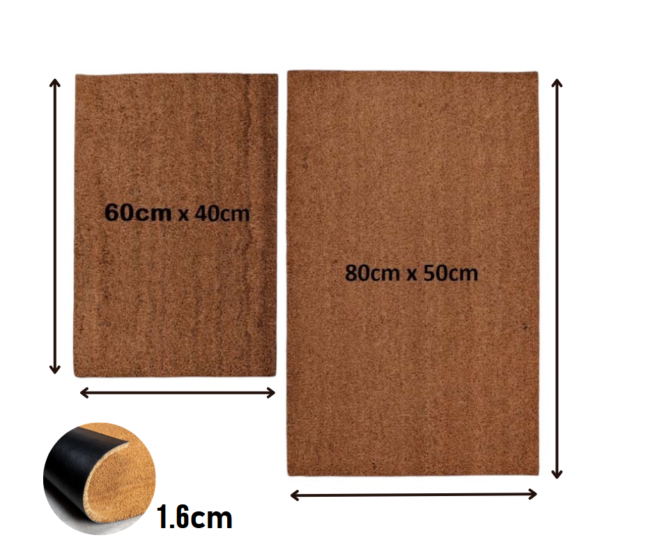 • Standardowy rozmiar 60cm × 40cm x 1.6cm lub 80cm x 50cm x 1.7cm– pasuje do większości drzwi wejściowych.