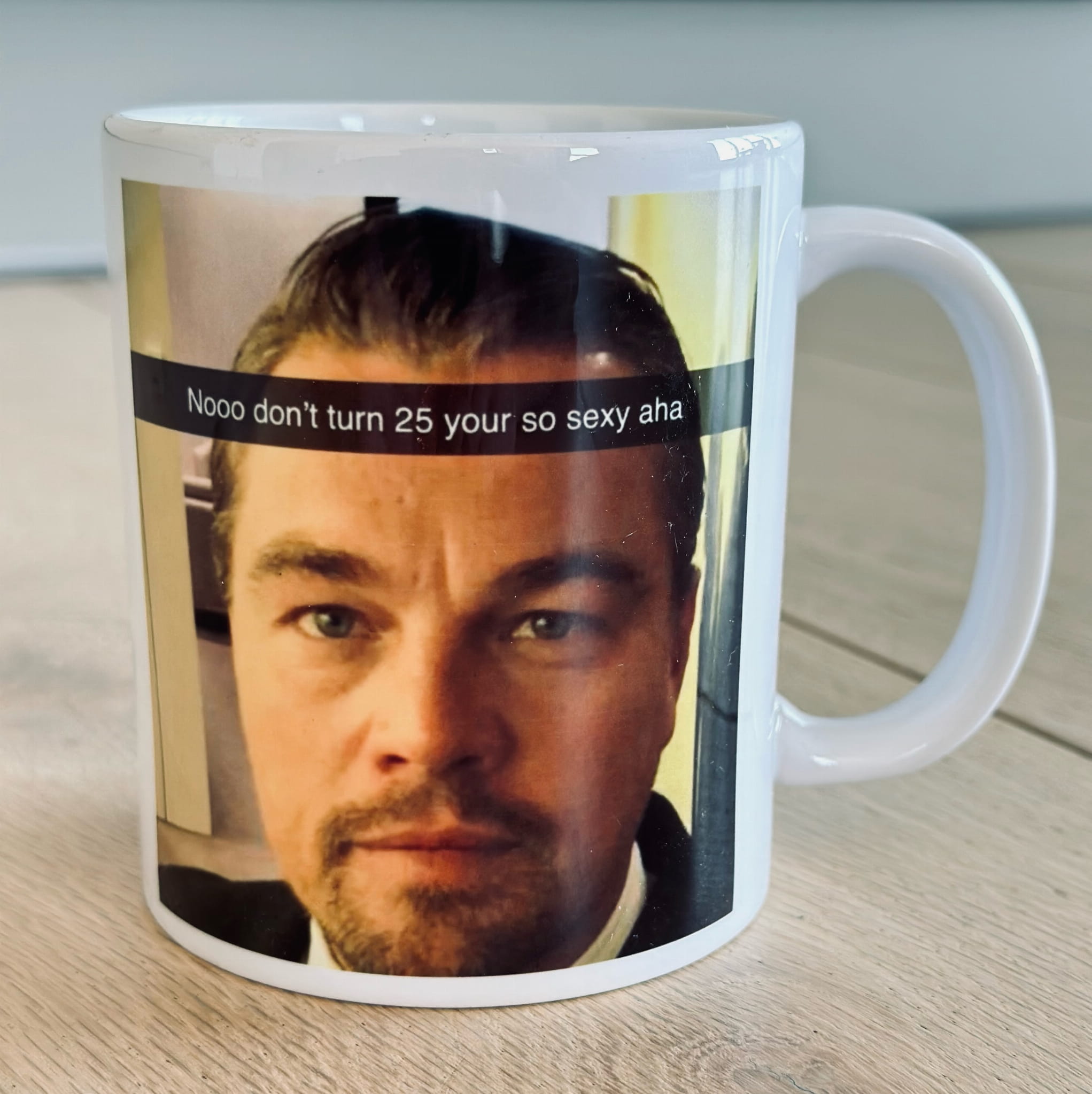 Kubek Mem "25. Urodziny Leonardo DiCaprio" | Śmieszny Prezent | Za Stara na Leo Snapchat | 11oz (330 ml)