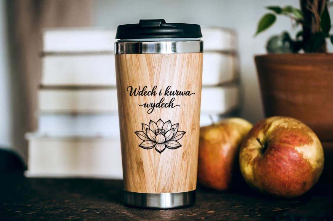 Bambusowy kubek termiczny: Wdech i Kurwa Wydech– 450 ml