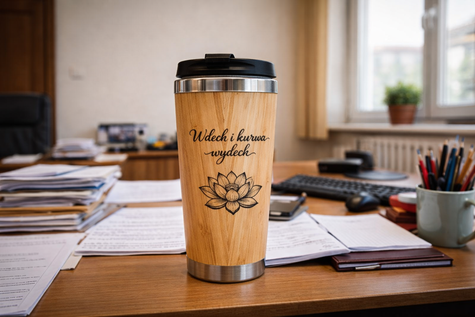 Chcesz mieć kubek, który nie tylko utrzyma odpowiednią temperaturę napoju, ale też idealnie odda Twoje podejście do pracy? Bambusowy kubek termiczny z grawerem „Wdech i Kurwa Wydech” to doskonałe połączenie praktyczności, ekologii i dobrego humoru.